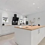A kitchenette at Bv166-Blavand-Gl-Skolevej-6 villa is equipped with an electric kettle, a refrigerator, and an oven. Serving dishes of Italian cuisine, Restaurant Italian Food is situated a 19-minute walk away.